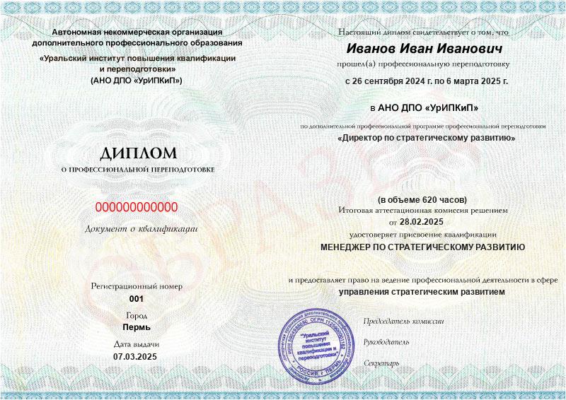 - Образец диплома о профессиональной переподготовке.
