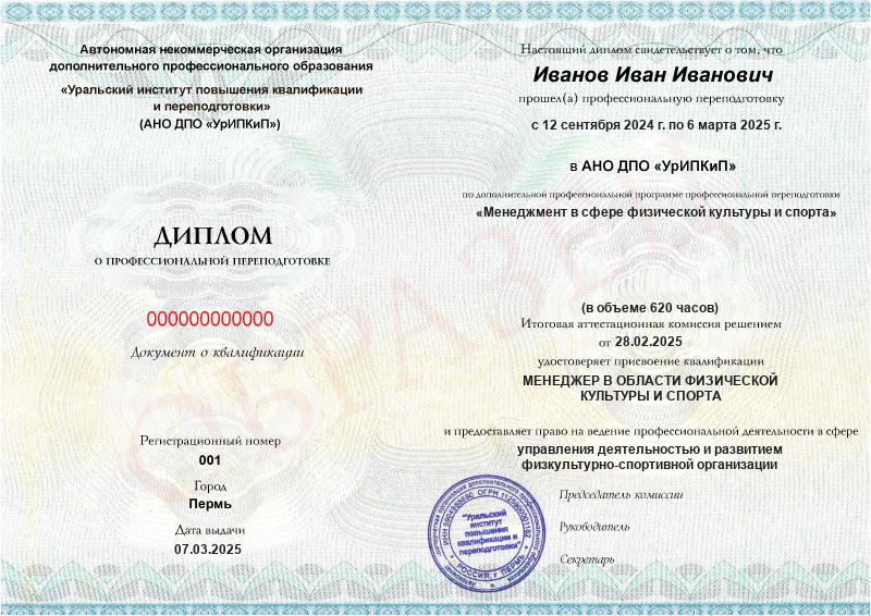 Да, дипломы и удостоверения оформляются в соответствии с действующим законодательством РФ. Документы печатаются на специальных бланках, заверяются печатью АНО ДПО «УрИПКиП».